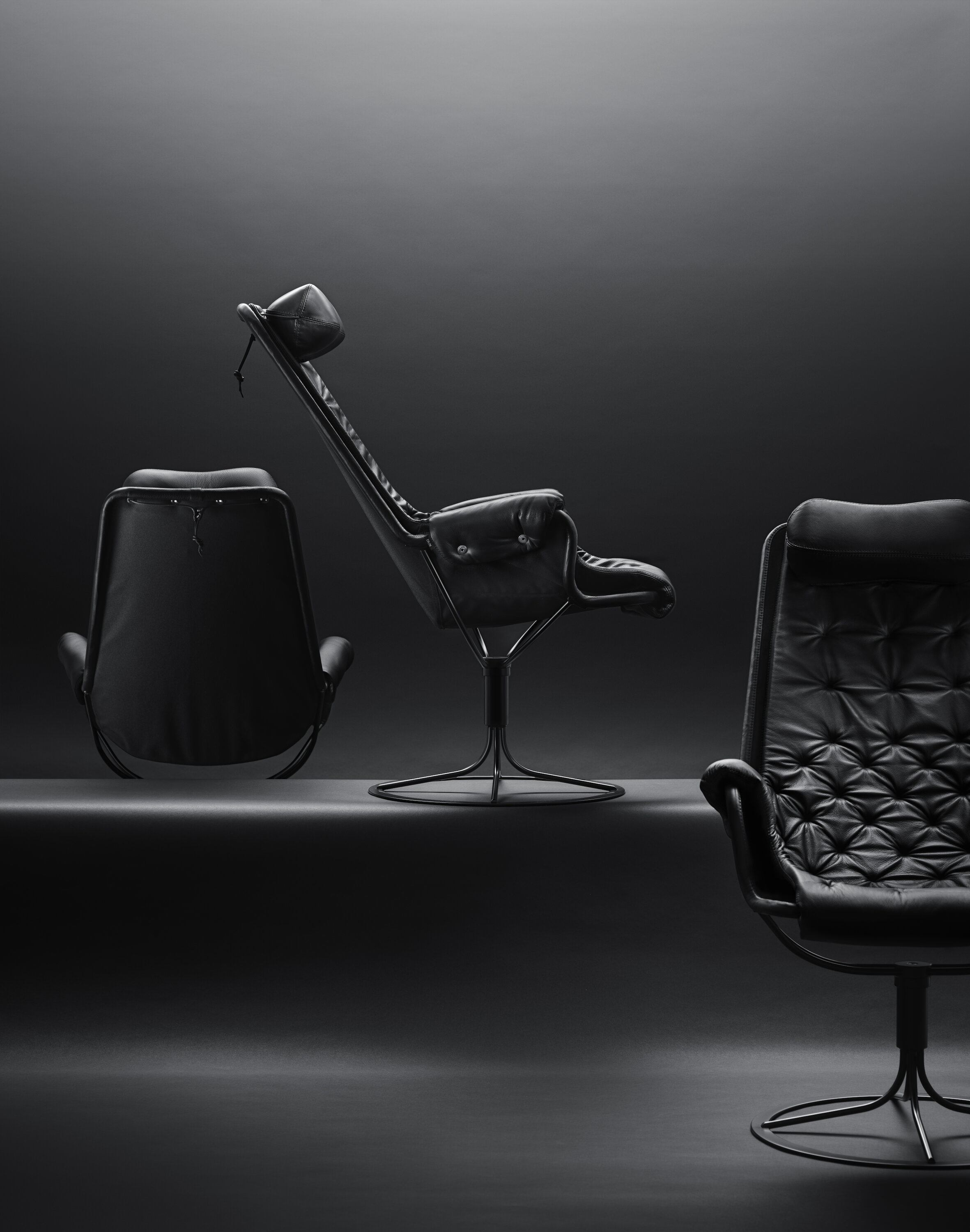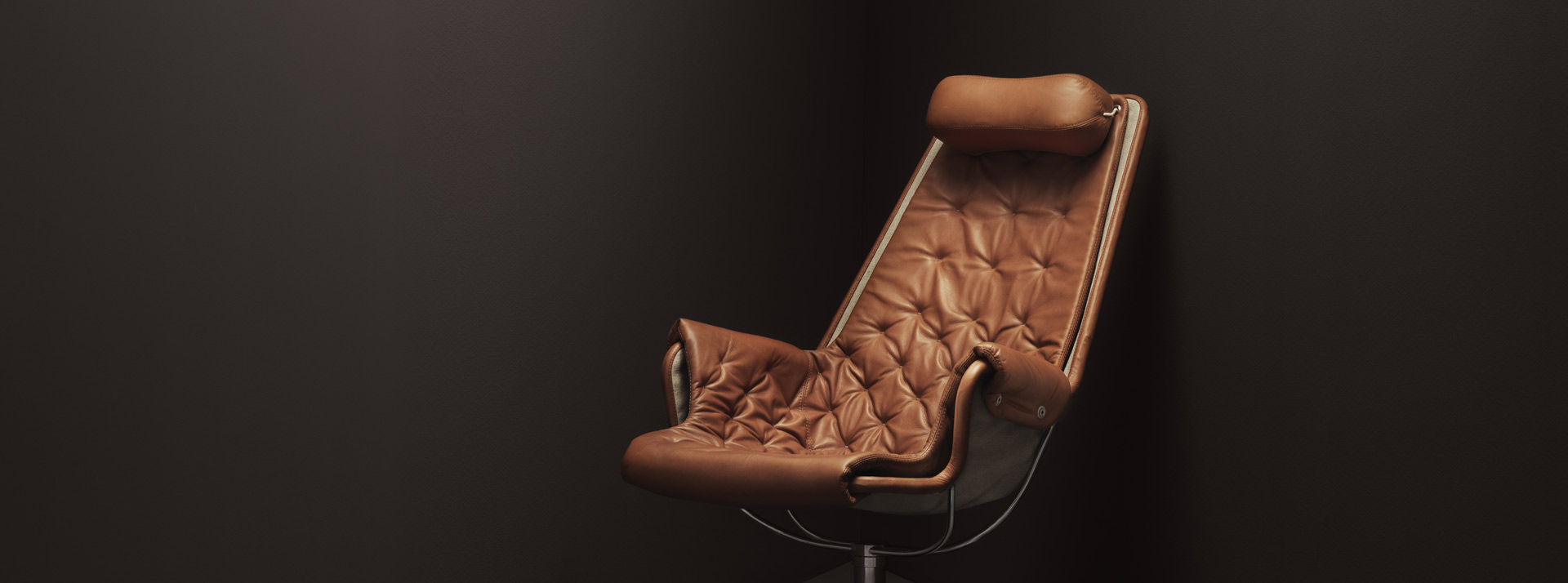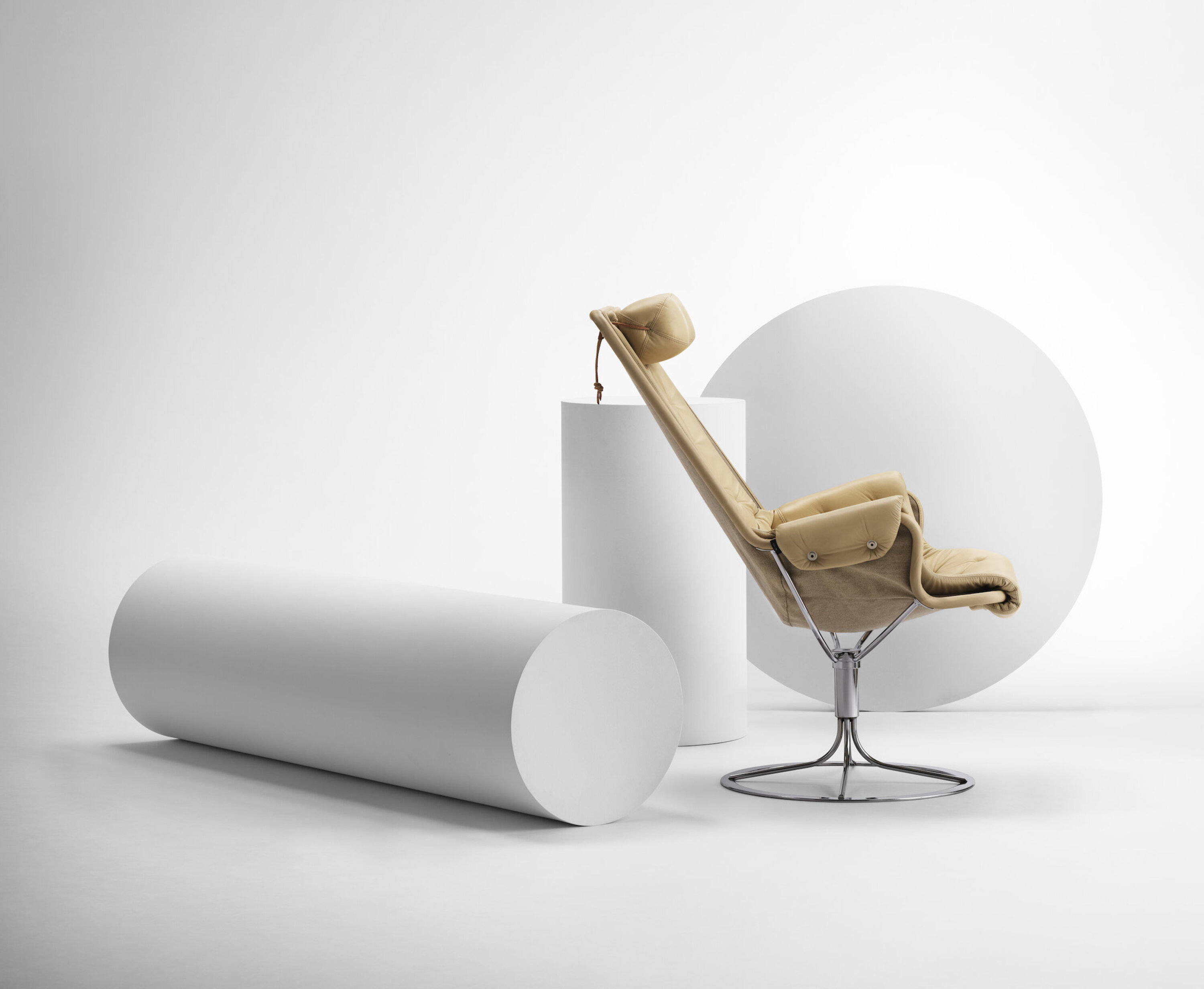 Bruno Mathsson 设计的标志型休闲椅。Jetson 椅子完美体现了他对舒适和经典的瑞典现代设计风格的痴迷。它采用碗形座椅,符合人体工程学设计的高背,带头枕。镀铬旋转底座配有独特的自返回机构。